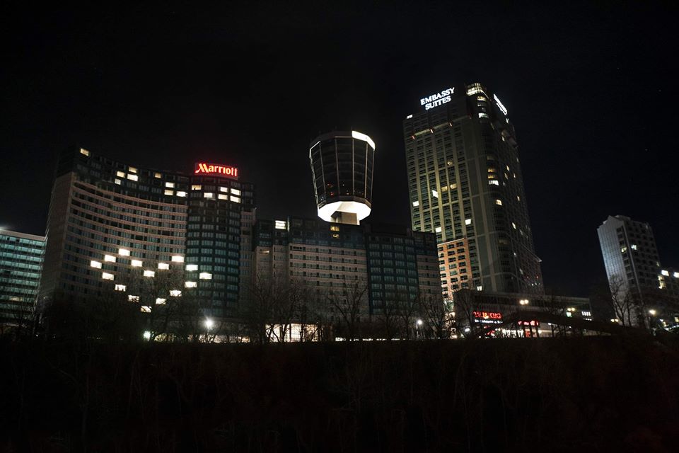 Update: On Saturday several Niagara Falls Hotels including Sheraton Fallsview, Fallsview Casino Resort, Marriott on the Falls, Embassy Suites and the Oakes Hotel also participated. The efforts were also covered by several media outlets including CNN, BlogTO, Narcity, and CHCH News.