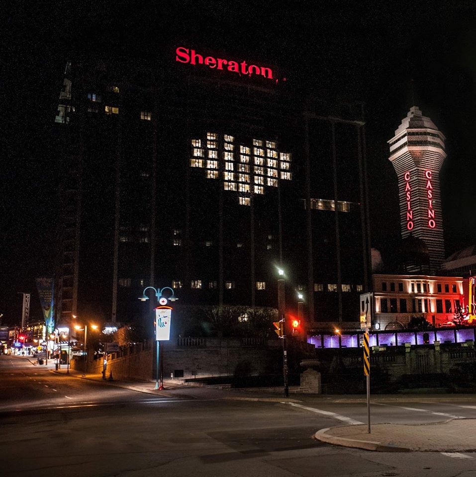 To offer some brightness in the dark, staff at the Marriott Fallsview Hotel & Spa thoughtfully staggered lighting in rooms on Friday night resulting in a massive, multi-storey heart to show their love and solidarity with all those impacted by the virus.