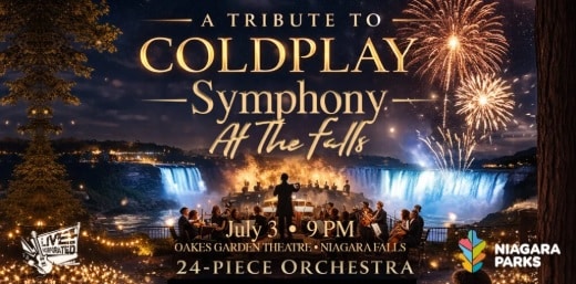 Enjoy an unforgettable evening as a 24-piece orchestra performs a stunning tribute to Coldplay under the stars and in front of the Falls at Oakes Garden Theatre.